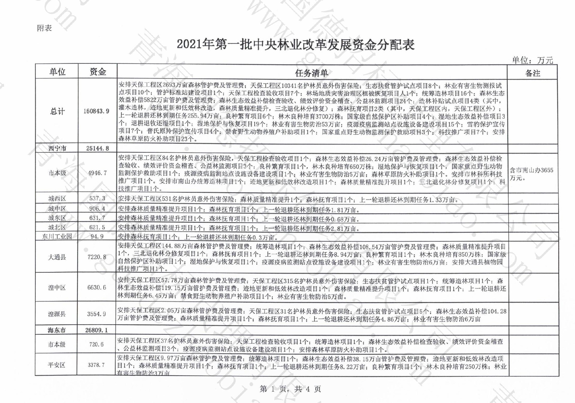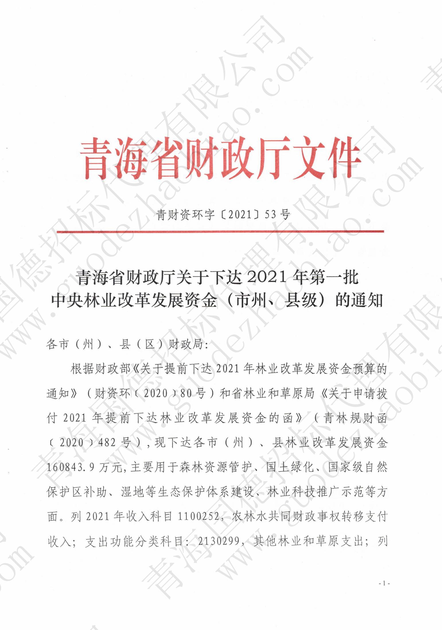 青海省財(cái)政廳關(guān)于下達(dá)2021年第一批中央林業(yè)改革發(fā)展資金(市州、縣級)的通知
