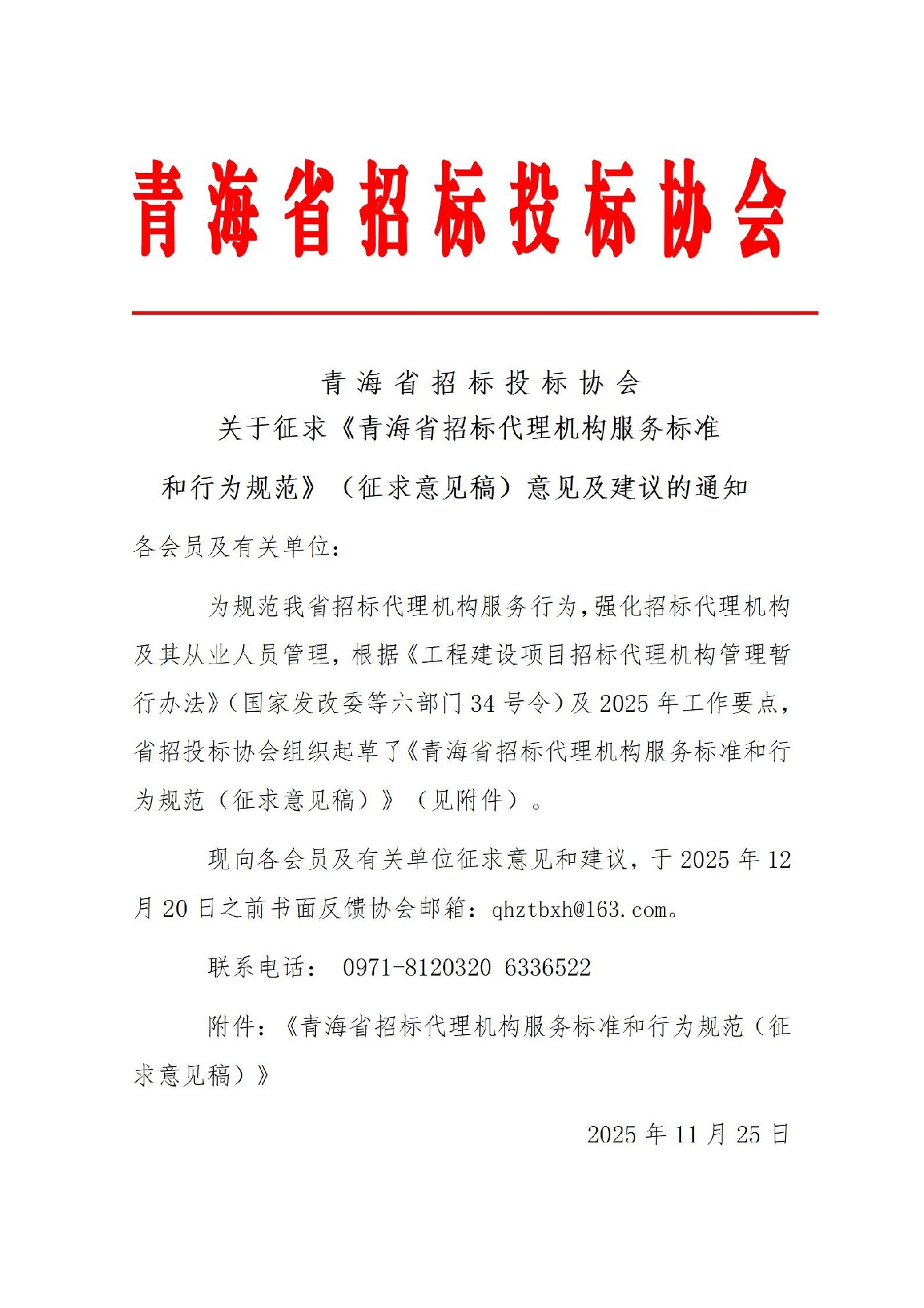 轉(zhuǎn)發(fā)青海省招標(biāo)投標(biāo)協(xié)會(huì)關(guān)于征求《青海省招標(biāo)代理機(jī)構(gòu)服務(wù)標(biāo)準(zhǔn) 和行為規(guī)范》(征求意見稿)意見及建議的通知