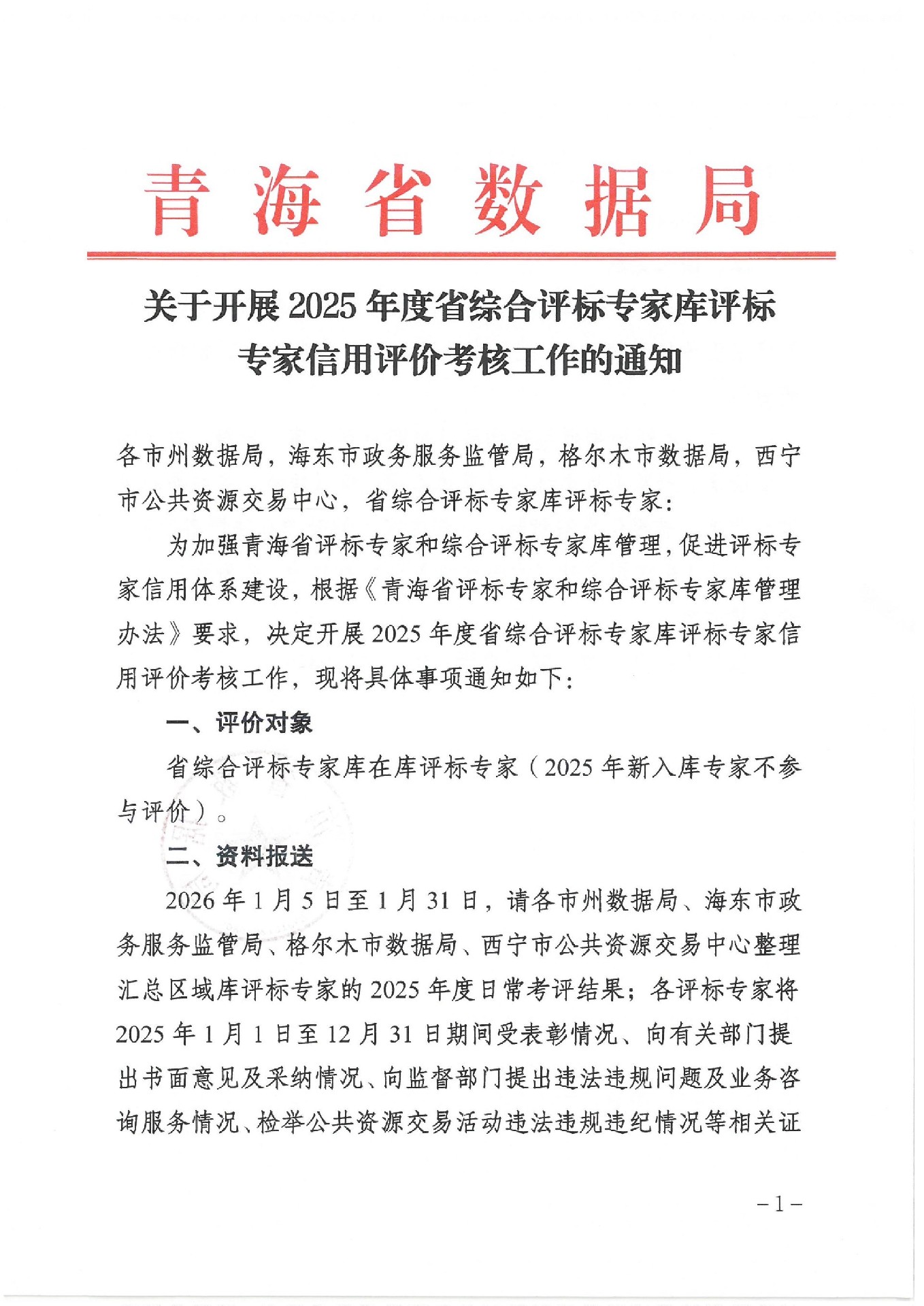 青海國德招標(biāo)代理有限公司轉(zhuǎn)發(fā)青海省數(shù)據(jù)局關(guān)于開展2025年度省綜合評(píng)標(biāo)專家?guī)煸u(píng)標(biāo)專家信用評(píng)價(jià)考核工作的通知